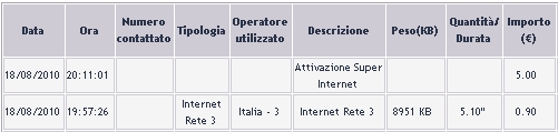 Mi hanno quindi suggerito di effettuare un traffico dati di prova per verificare se mi veniva decrementato il credito residuo.