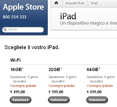 Le successive sono relative all’acquisto tramite la catena ePrice: i costi di spedizione della terza immagine sono relativi a un ipotetico acquisto della versione Wi-Fi da 32 Gb. Di solito, quando si leggono certe cose, qualche domanda ce la si pone.