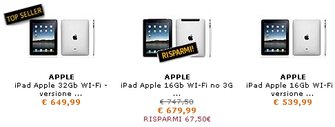 Trova le differenze: la prima immagine è relativa ai prezzi degli iPad se acquistati direttamente su un Apple Store.