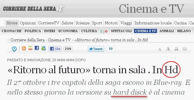 Attraverso Giorgio scopro che al Corriere.it proprio non riescono a scrivere “DISK”, tant’è che prima lo scrivono male e poi, evidentemente dopo aver ricevuto qualche segnalazione del refuso, hanno optato per la rimozione completa di quella porzione della frase (tremo al pensiero su come avrebbero potuto scrivere in inglese “alta definizione”).