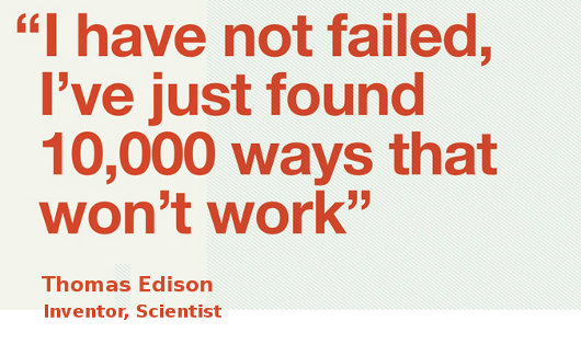 Leggo che James Dyson, l’inventore degli aspirapolveri senza sacchetto, ha realizzato ben 5.127 prototipi in 15 anni prima di ottenere un modello funzionante. E’ ovviamente un caso limite (ed erano anche altri tempi), ma rende l’idea che ogni fallimento può essere un passo di avvicinamento verso il successo. E anche i fratelli Wright non furono da meno.