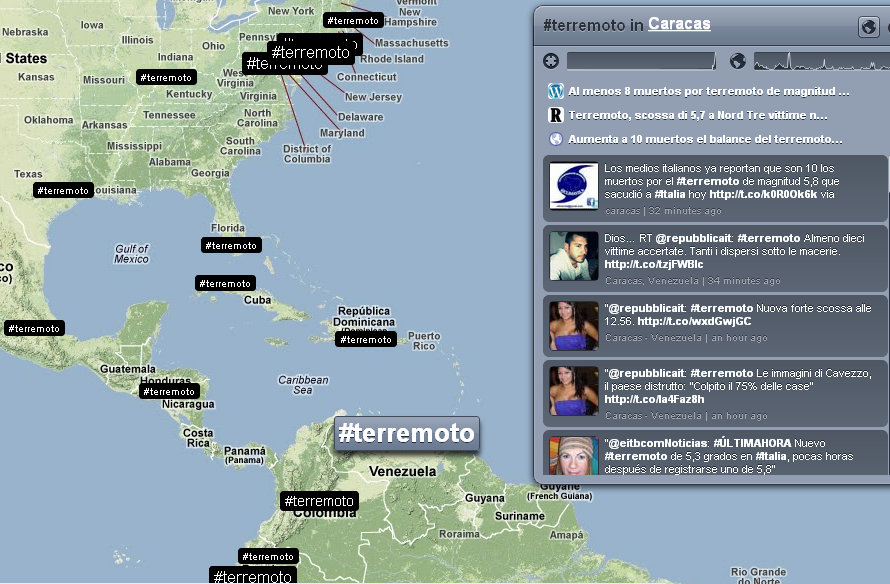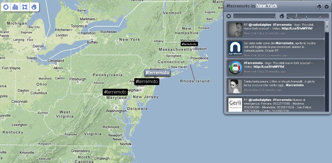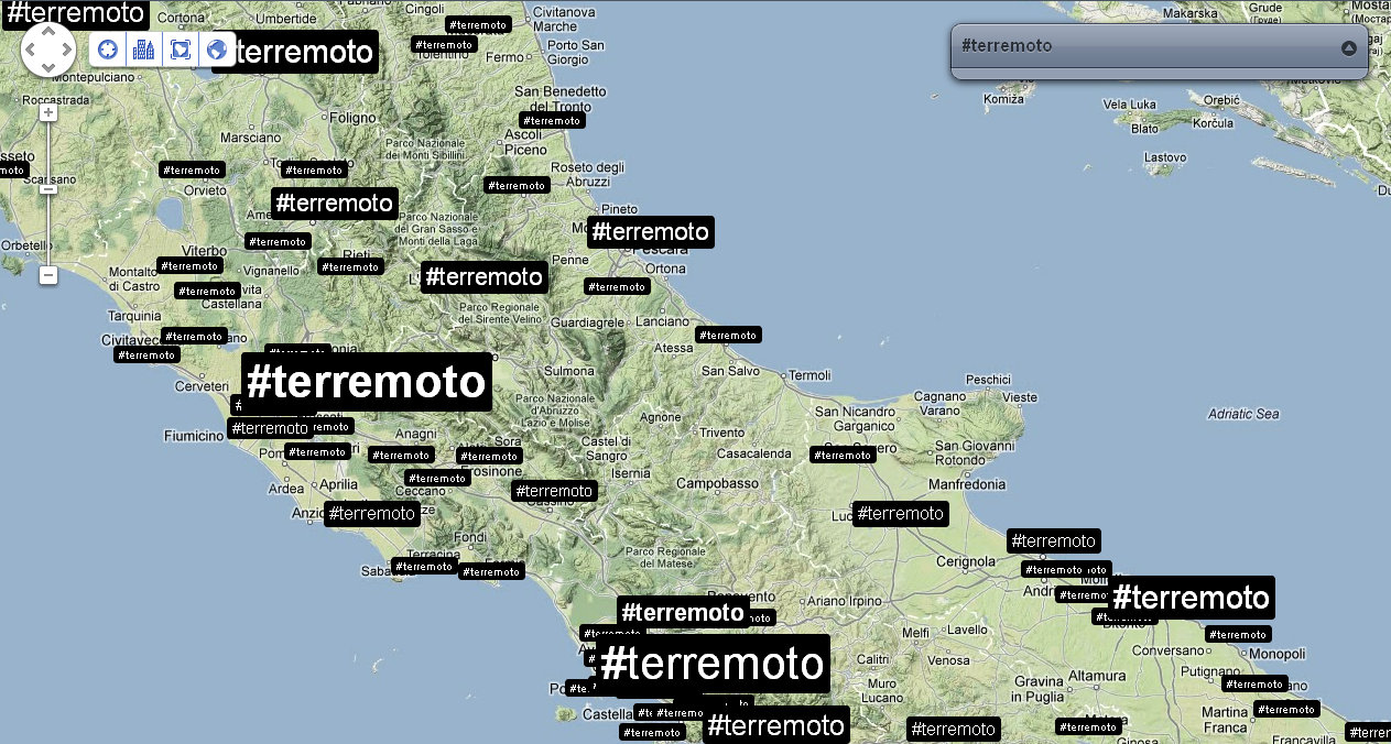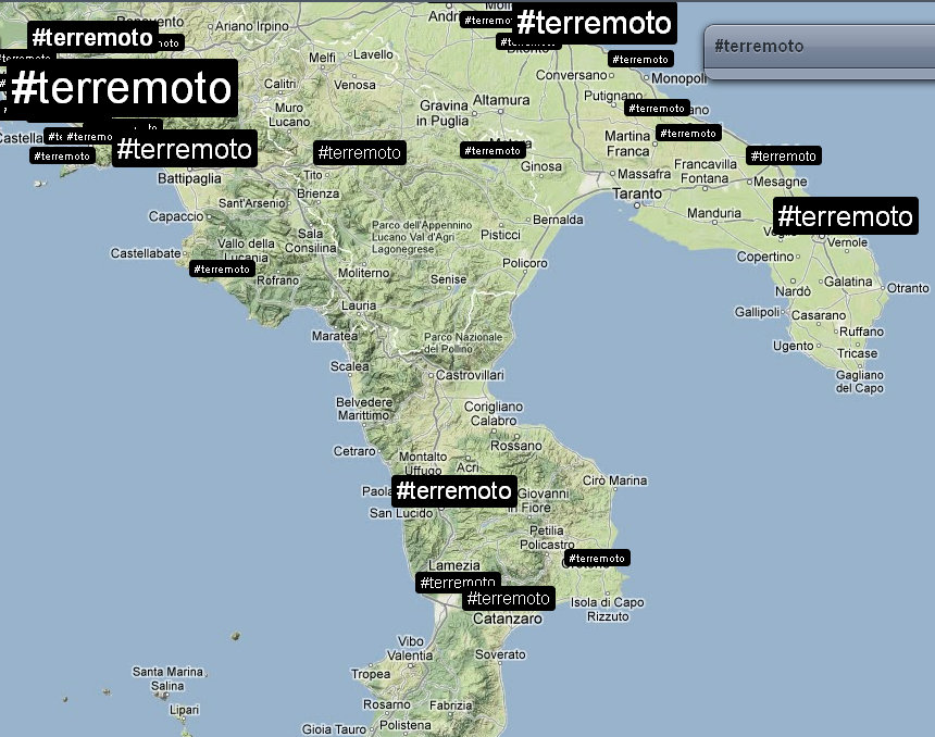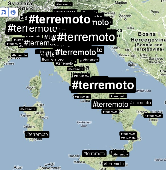 Alle ore 9:04 la situazione dei tweet che utilizzavano l’hashtag #terremoto era questa.