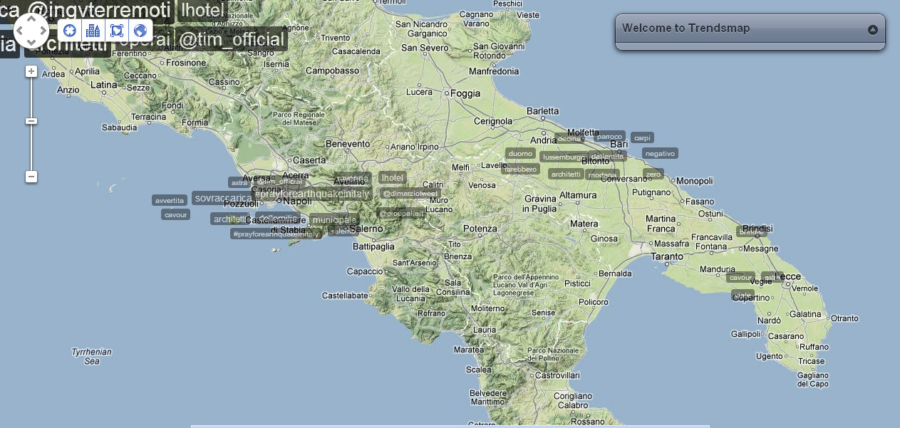 In questo momento si parla di #terremoto in tutta la penisola, anche nei piccoli Comuni. La partecipazione è generale, però i trend specifici rimangono concentrati nei nodi territoriali forti.