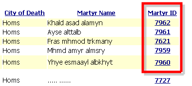 Il monitoraggio del “Syrian Revolution Martyr Database”