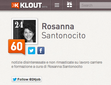 Se a tutto questo aggiungiamo la percezione di una generale scarsa conoscenza dei social media, come dimostra anche la gestione dell’account Klout della giornalista in questione – seppur si stia parlando di una persona che da ben cinque anni si occupa del blog del Sole24Ore dedicato al lavoro, “tipico esempio di giornalista della carta stampata “fulminata” da Internet“, che svolge anche della formazione e che è autrice di libri come “Webcareers” – il quadro è completo.