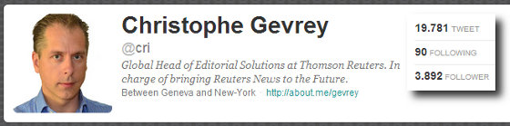 Secondo esempio: Christophe Gevrey (@cri) di Thomson Reuters