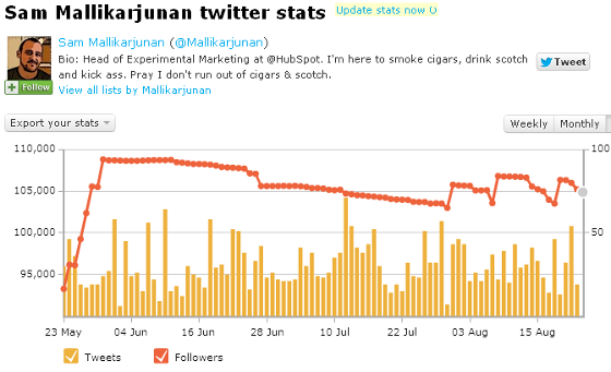 E comunque, come incrementare il numero dei follower su Twitter è un argomento che decisamente gli interessa.