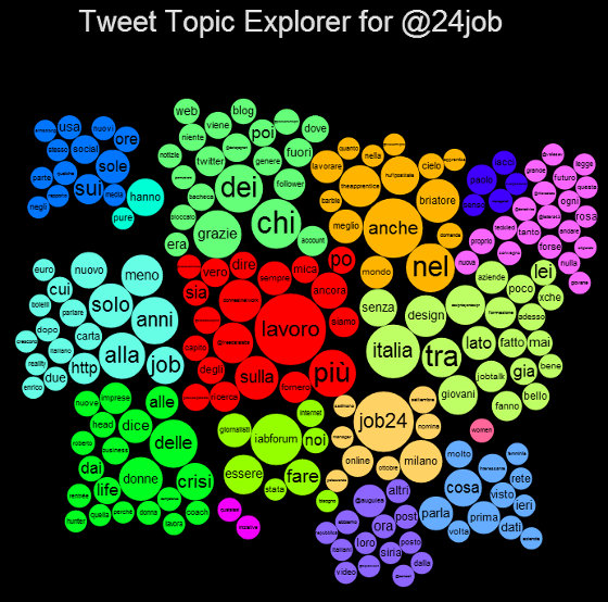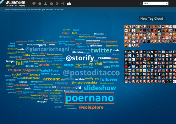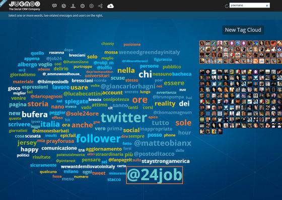 – le TAG CLOUD dei contenuti dei tweet che referenziavano l’account @24JOB oppure l’hashtag #poernano.