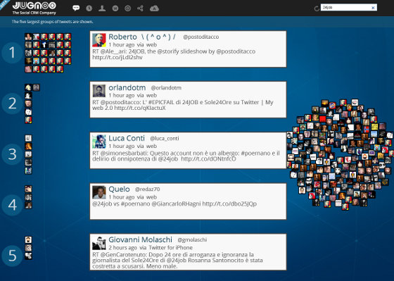 Jugnoo è un tool poco conosciuto ma molto interessante: fornisce servizi per l’ascolto, la visualizzazione e la distribuzione di contenuti, sia da motore di ricerca che da social media.