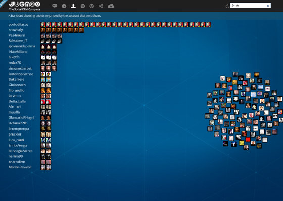 • per visualizzare volumi/timing/contenuti delle conversazioni: Tweetcharts