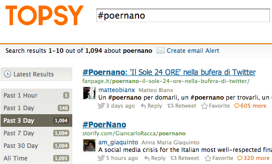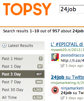 • per visualizzare volumi/timing delle conversazioni: Topsy analytics