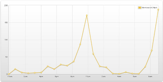 Alle 10 di mattina le conversazioni in rete che riguardavano @24JOB avevano già oltrepassato quelle del giorno precedente.