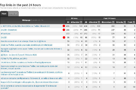 – CHI ha spinto maggiormente i tweet che referenziavano l’account 24JOB. La riga in alto si riferisce al mio account.