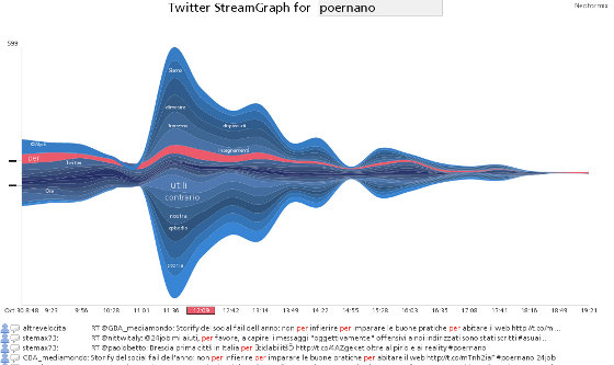 • per visualizzare volumi/timing/contenuti delle conversazioni: TwitterStreamGraphs