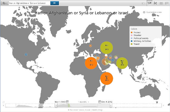 Un altro esempio è documentato dal caso studio dove viene documentata la Primavera araba utilizzando Recorded Future insieme a Ushahidi, il noto servizio open di geomapping.