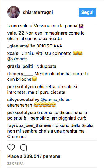 rosyabt @chiaraferragni hai appena calpestato la dignità della Sicilia e dei siciliani [lacrime] Il cornetto è quello che voi al nord chiamate Brioche!